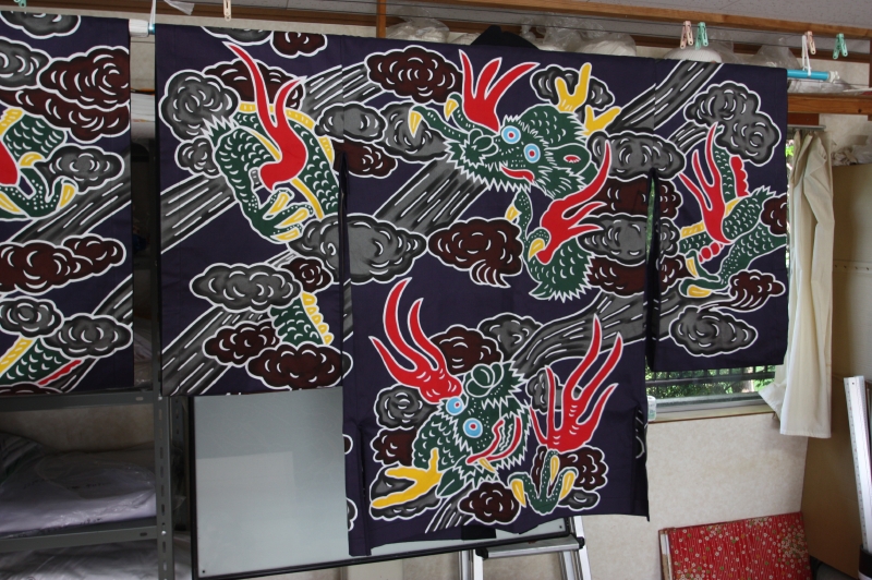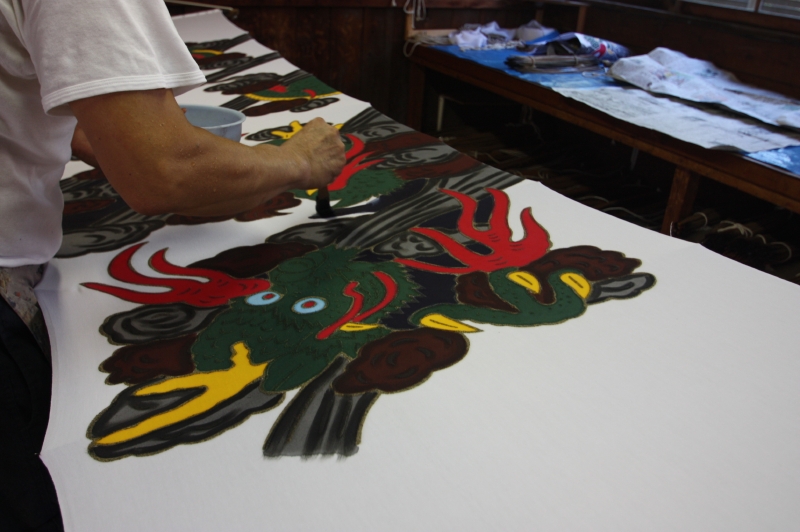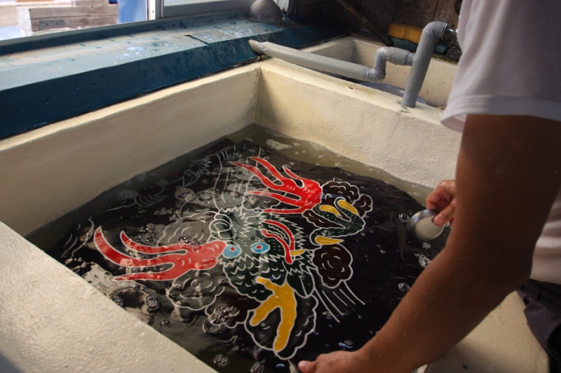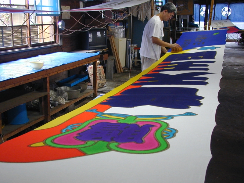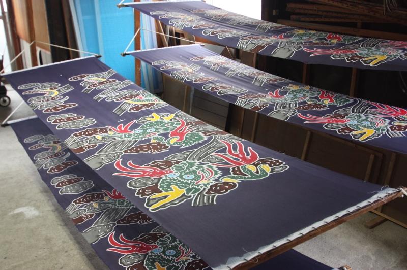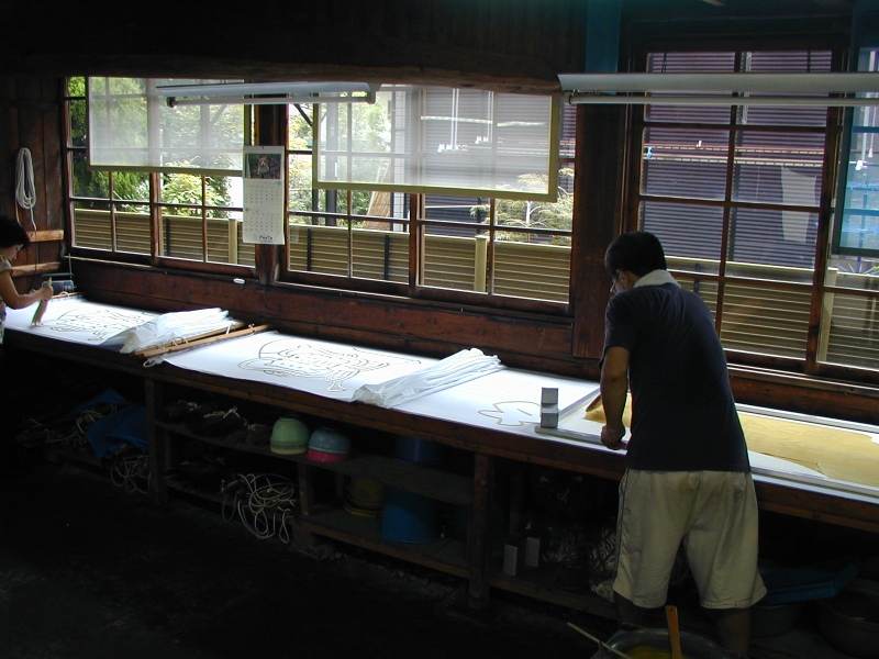 受注 --- 版下原稿 --- 生地の準備 --- 型作成・下書き --- 型糊置き・筒引き --- 乾燥 --- 染料調合 --- 染色