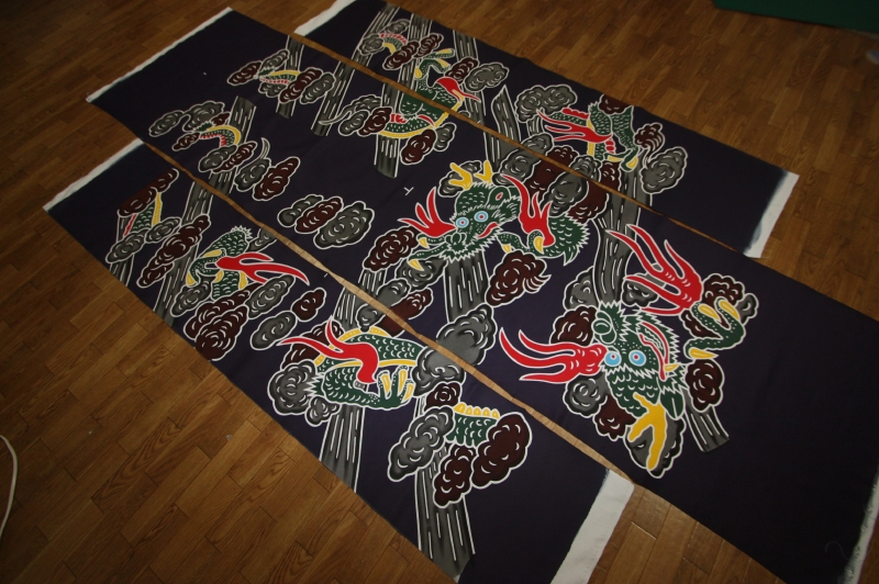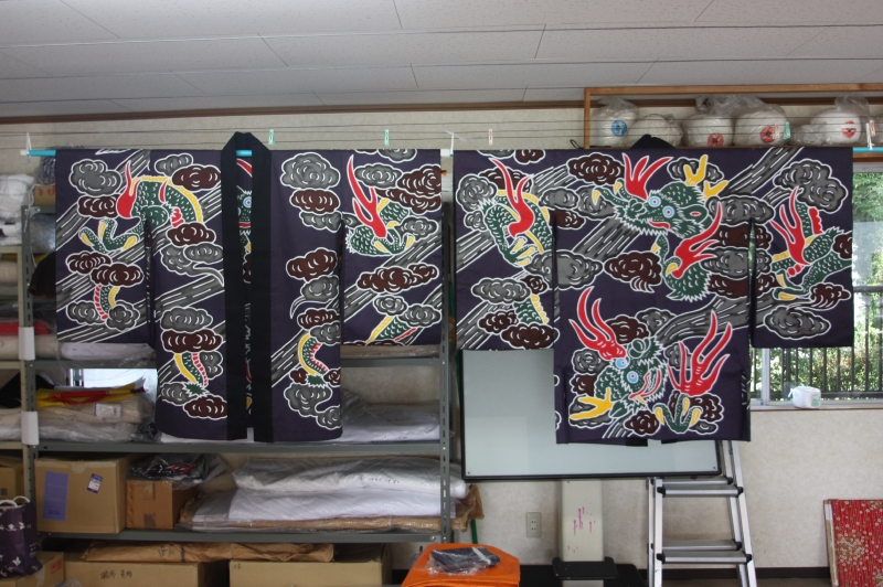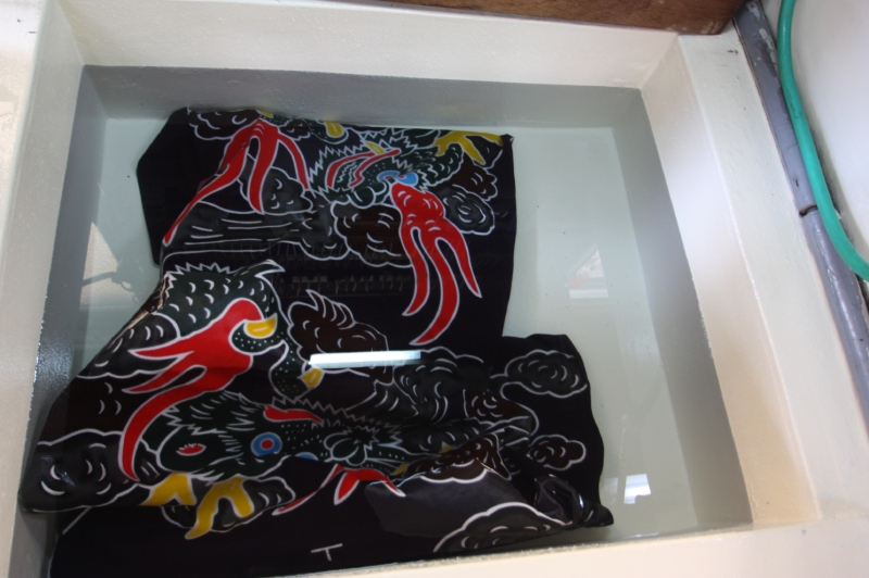 --- 乾燥 --- 固着処理 --- 水洗 --- 乾燥 --- 仕立て準備 --- 縫製 --- 仕上げ(アイロンがけ)--- 納品
